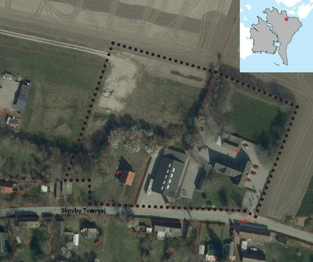 Skovby Friskole. Afgrænsningen viser arealet der planlægges for.