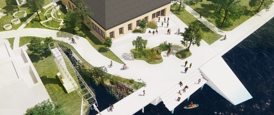 Bropladsen er en åben og levende plads, hvor Nykøbing F.s havnemiljø og historie møder fremtidens byliv. Her er der både plads til aktivitet, ophold, udsigt og ro – et byrum, der forbinder byen med sundet og skaber et naturligt knudepunkt for alle.